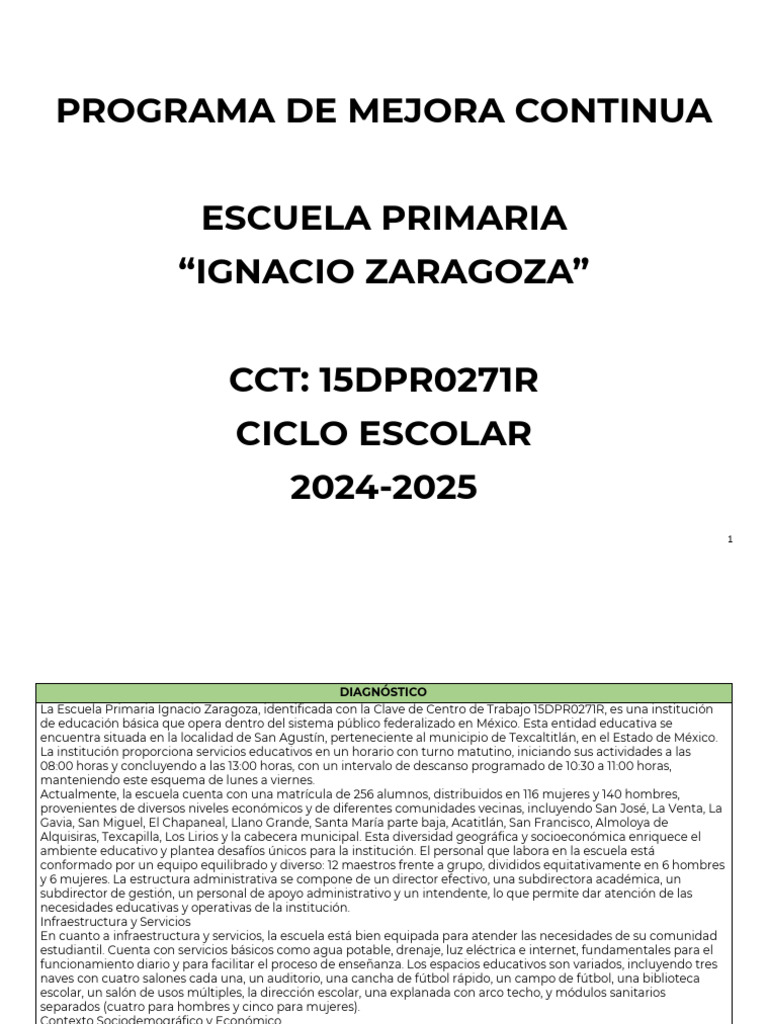 La Escuela Primaria Ignacio Zaragoza, identificada con la Clave de Centro de Trabajo 15DPR0271R, es una institución