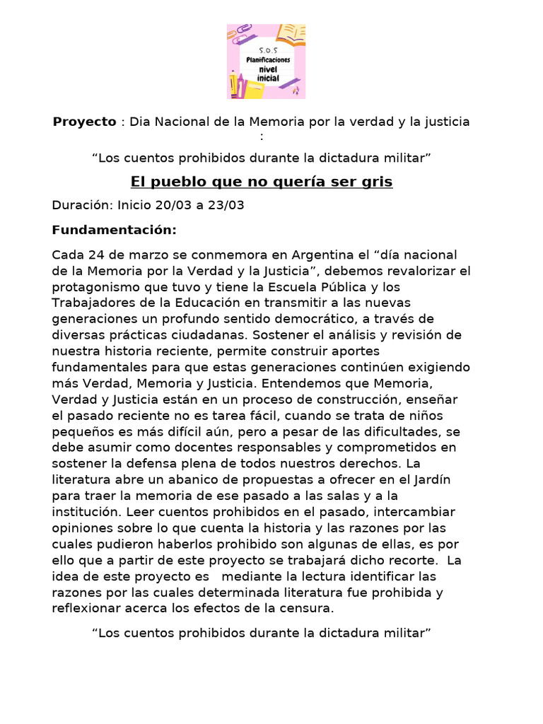 Proyecto : Dia Nacional de la Memoria por la verdad y la justicia