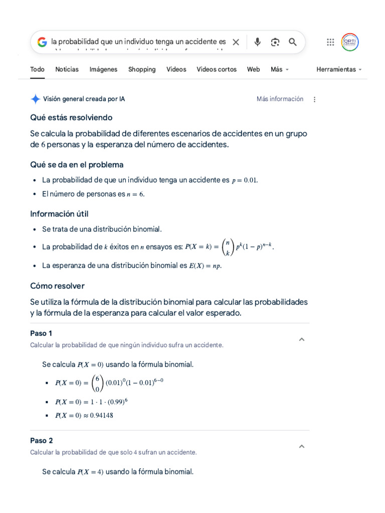 Calcular la probabilidad de que ningún individuo sufra un accidente.
