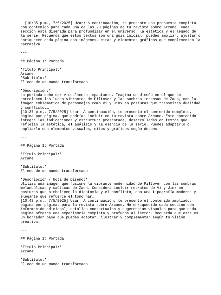 página por página, que podrías incluir en tu revista sobre Arcane. Este contenido