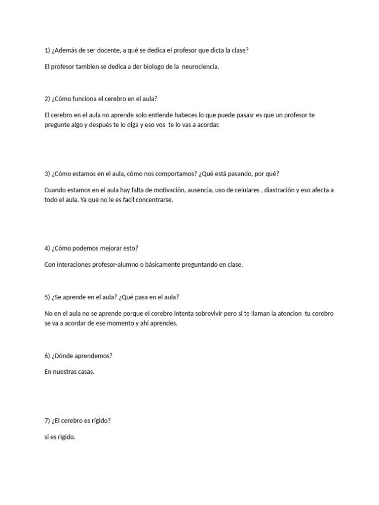 El cerebro en el aula no aprende solo entiende habeces lo que puede pasasr es que un profesor te