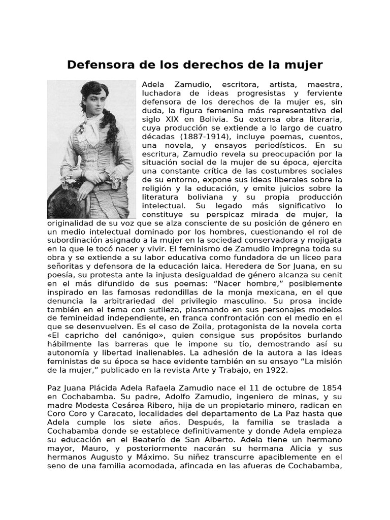 de su nacimiento, es hoy en Bolivia el Día de la Mujer, en homenaje a esta