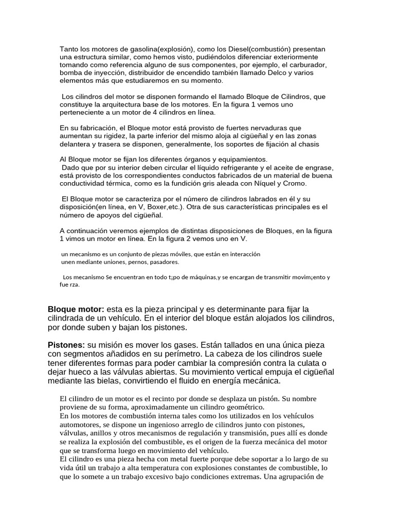 Tanto los motores de gasolina(explosión), como los Diesel(combustión) presentan