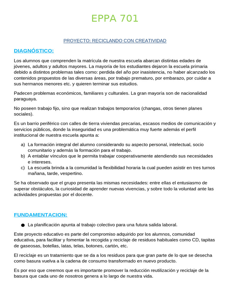 PROYECTO: RECICLANDO CON CREATIVIDAD