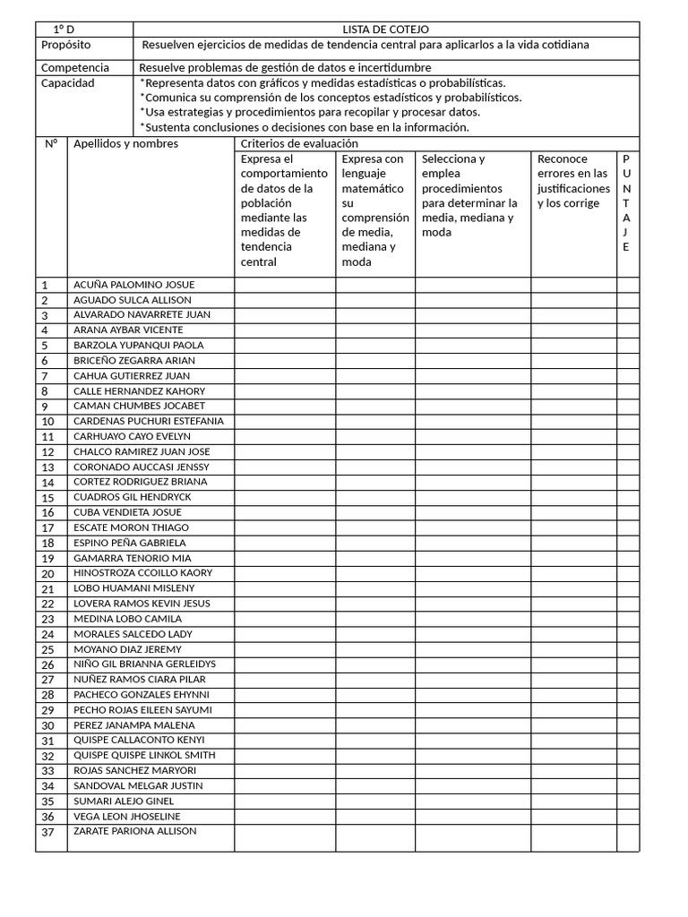 Propósito Resuelven ejercicios de medidas de tendencia central para aplicarlos a la vida cotidiana
