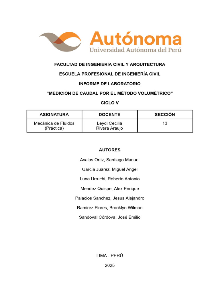 “MEDICIÓN DE CAUDAL POR EL MÉTODO VOLUMÉTRICO”