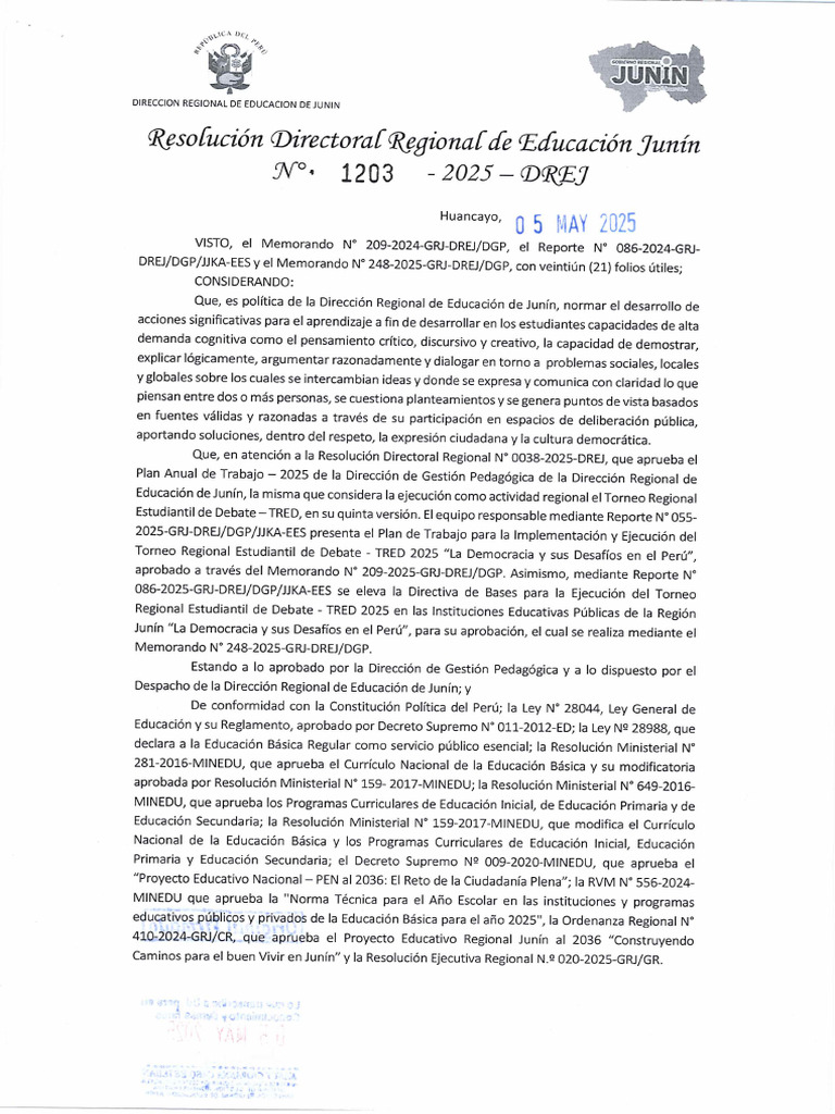 Debate – TRED 2025 en las instituciones educativas públicas de la región Junín.