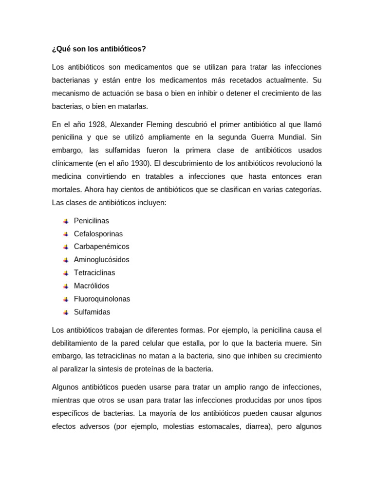 específicos de bacterias. La mayoría de los antibióticos pueden causar algunos