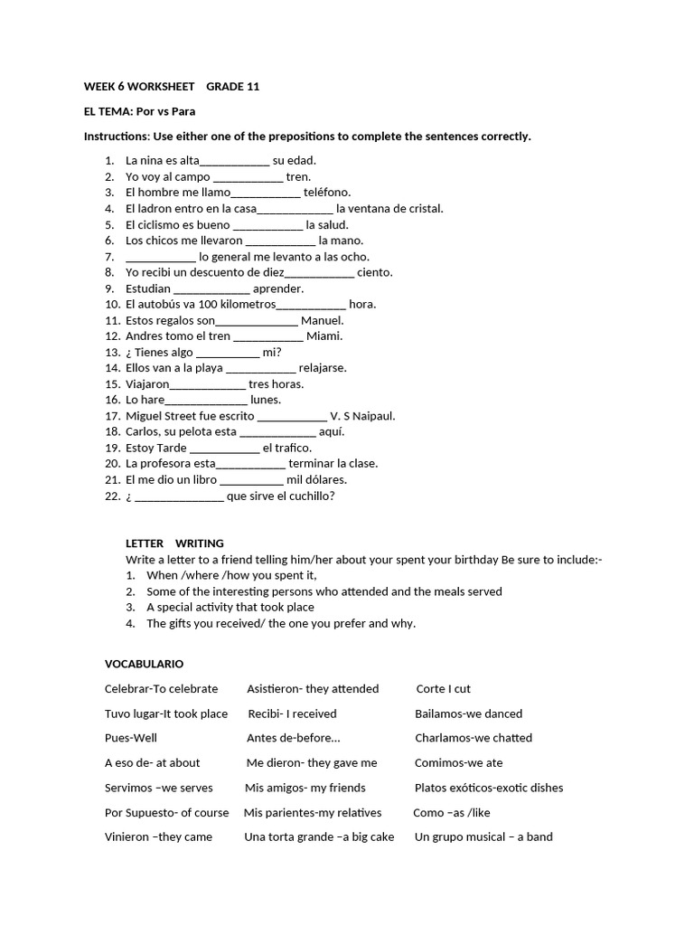 Tuvo lugar-It took place Recibi- I received Bailamos-we danced