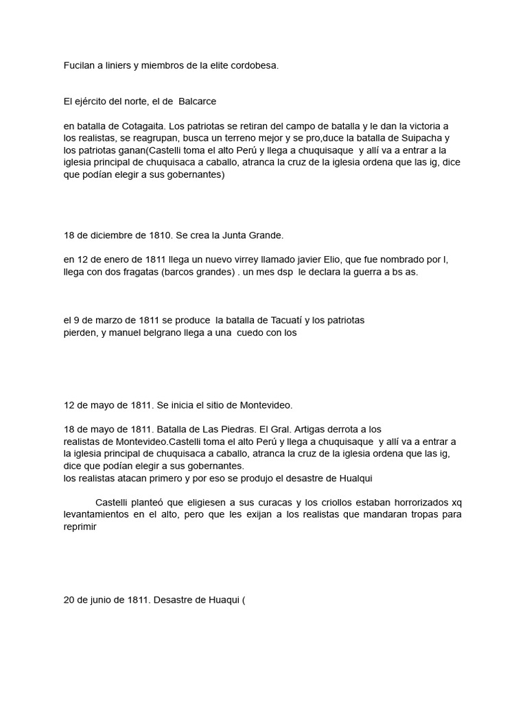 realistas de Montevideo.Castelli toma el alto Perú y llega a chuquisaque y allí va a entrar a