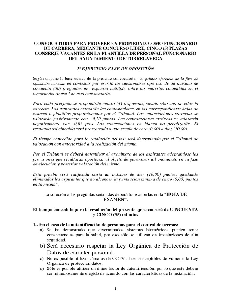 1º EJERCICIO FASE DE OPOSICIÓN