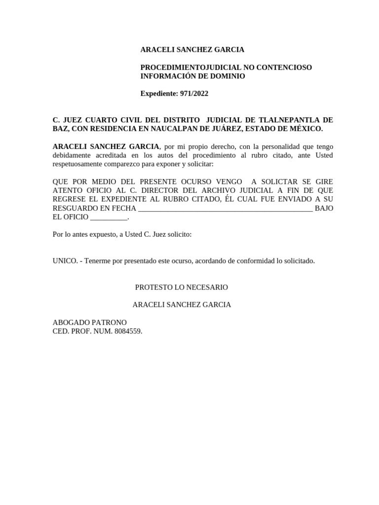 Por lo antes expuesto, a Usted C. Juez solicito: