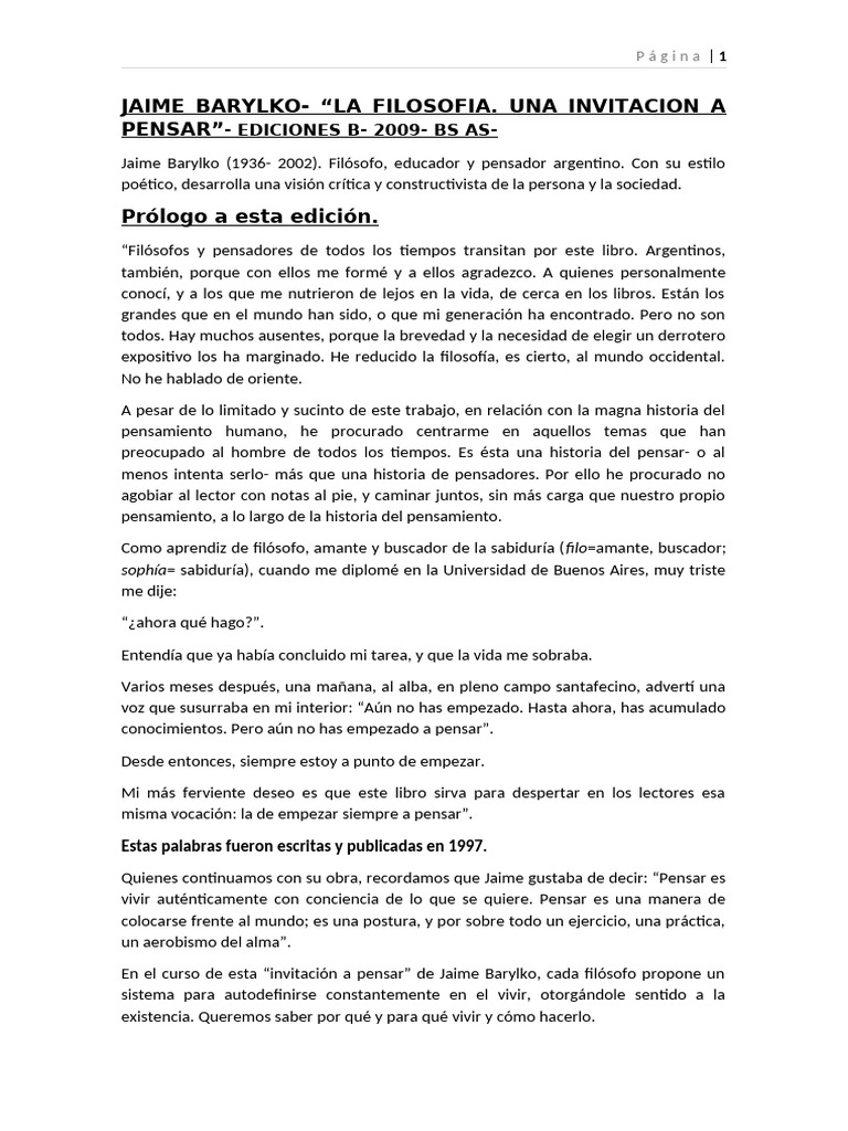 JAIME BARYLKO- “LA FILOSOFIA. UNA INVITACION A
