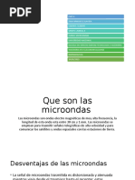 Una antena de microondas es aquella diseada para transmitir ptimamente en alguna n o banda de frecuencias entre los 2GHz y 300GHz. Generalmente cada antena transmite (y recibe) en uno o varios canales contiguos, de manera que el ancho de banda que ocupan es mucho menor al rango, pero se encuentra comprendido entre los valores anteriormente mencionados. Los usos t picos de estas antenas son para transmisin de datos punto a punto en forma o radiada. Actualmente es la tecnolog con ms uso para este tipo de transmisin, aunque a a o se esta comenzando a sustituir por bra optica. Tambin son utilizadas como mecanismo de e exploracin, para detectar seales electromagnticas ya sea en forma de Radio telescopios o o n e de RADAR.
