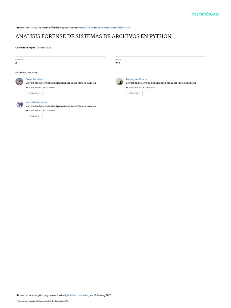 Palabras clave: Informática Forense, Evidencia Digital, Sistemas Operativos, Python