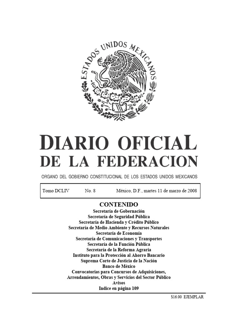 Contenido: Tomo Dcliv No. 8 México, D.F., Martes 11 de Marzo de 2008