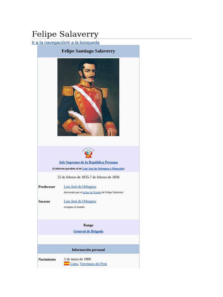 Felipe Santiago Salaverry del Solar (Lima, 3 de mayo de 1806 - Arequipa, 18