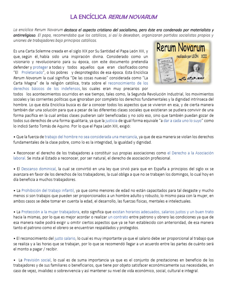 Rerum Novarum la cual significa “De las cosas nuevas” considerada como “La