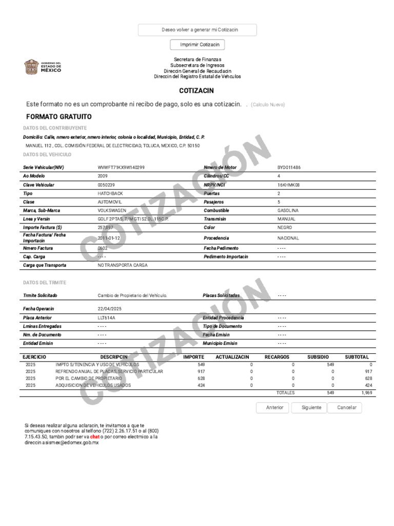 Deseo volver a generar mi Cotizacin