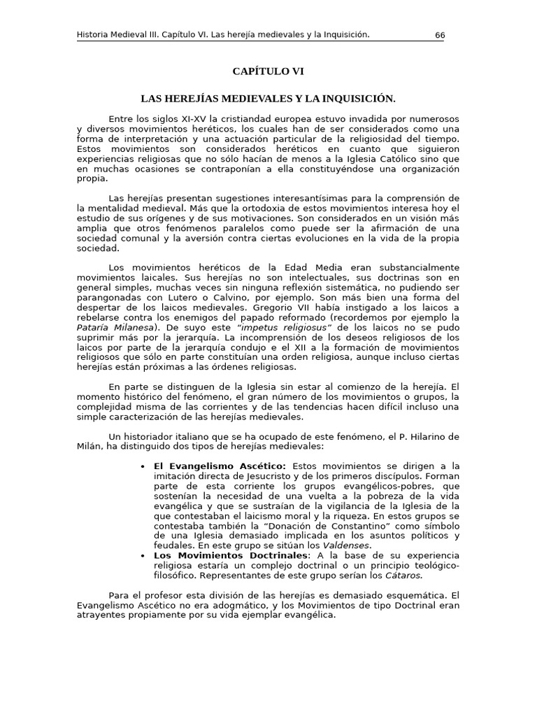 Historia Medieval III. Capítulo VI. Las herejía medievales y la Inquisición. 67