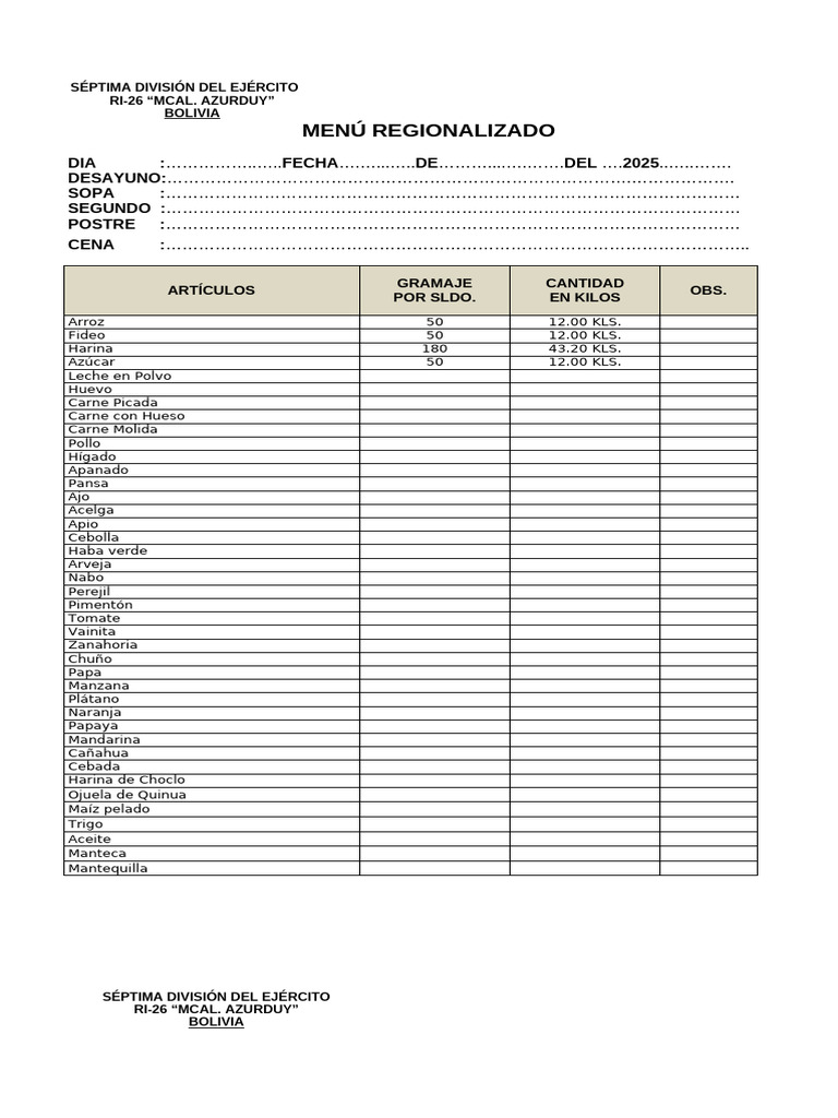 DEL LIBRO DE RACIONAMIENTO Y ELABORACIÓN DEL RANCHO, QUE CONSTA DE 100