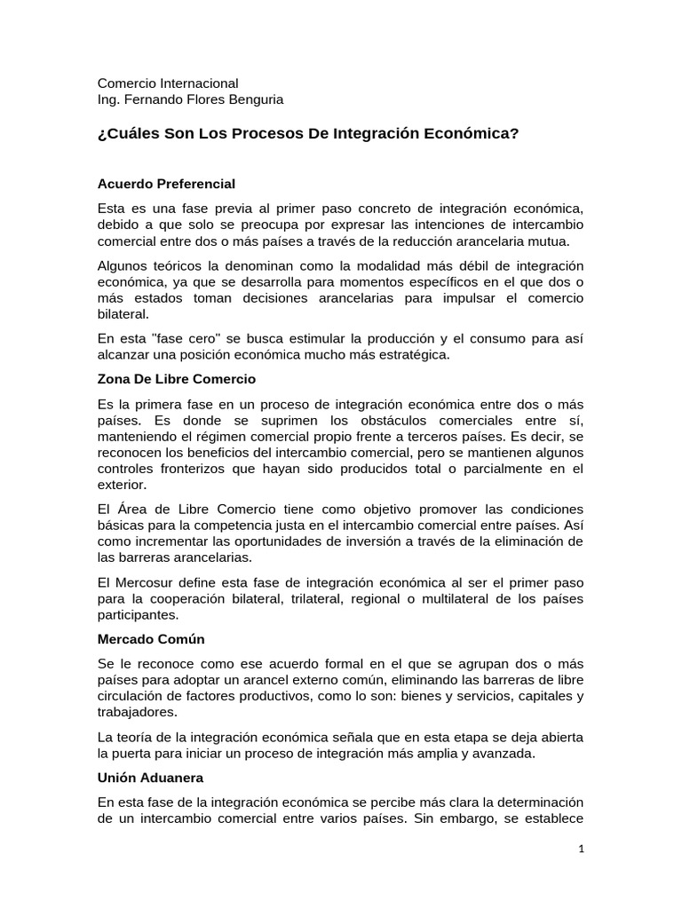 ¿Cuáles Son Los Procesos De Integración Económica?