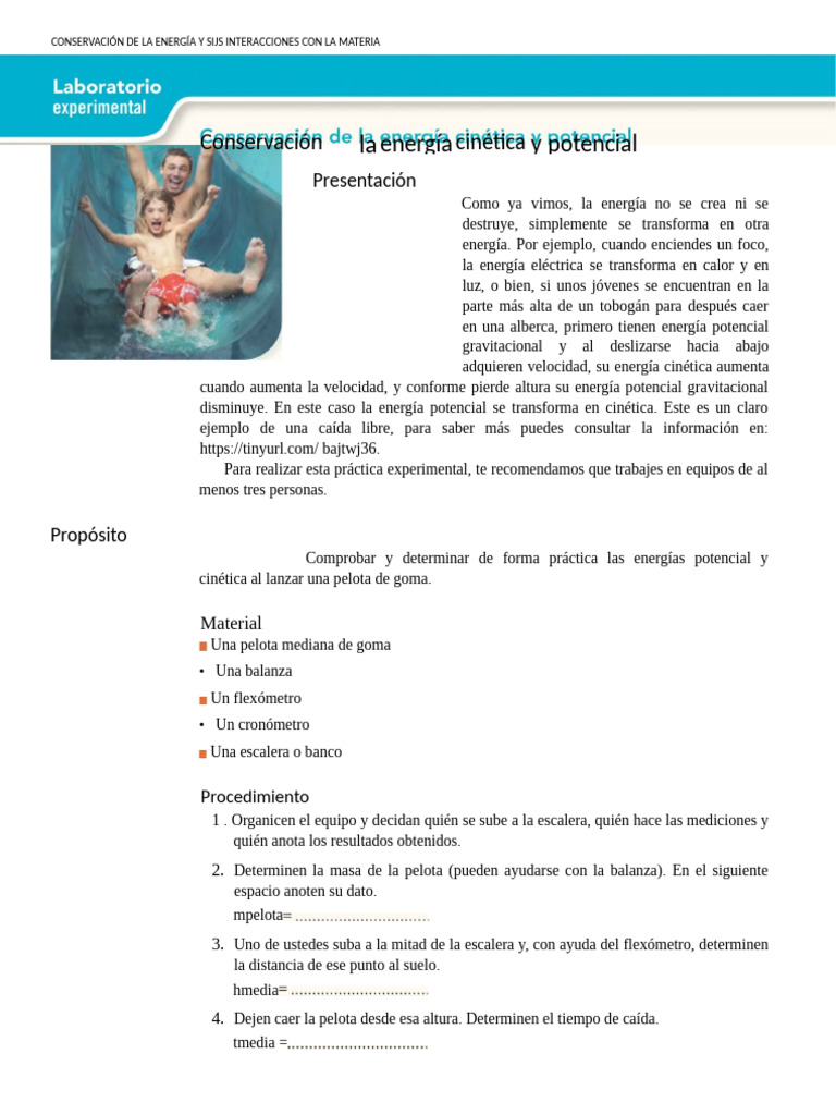 Comprobar y determinar de forma práctica las energías potencial y