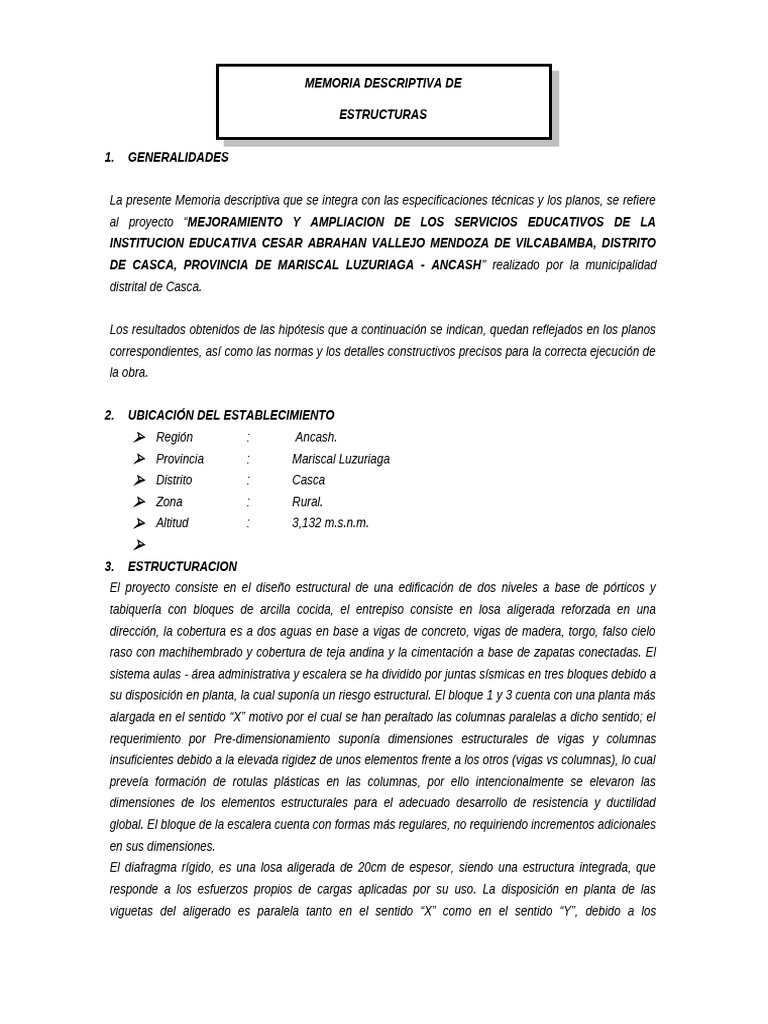 DE CASCA, PROVINCIA DE MARISCAL LUZURIAGA - ANCASH" realizado por la municipalidad