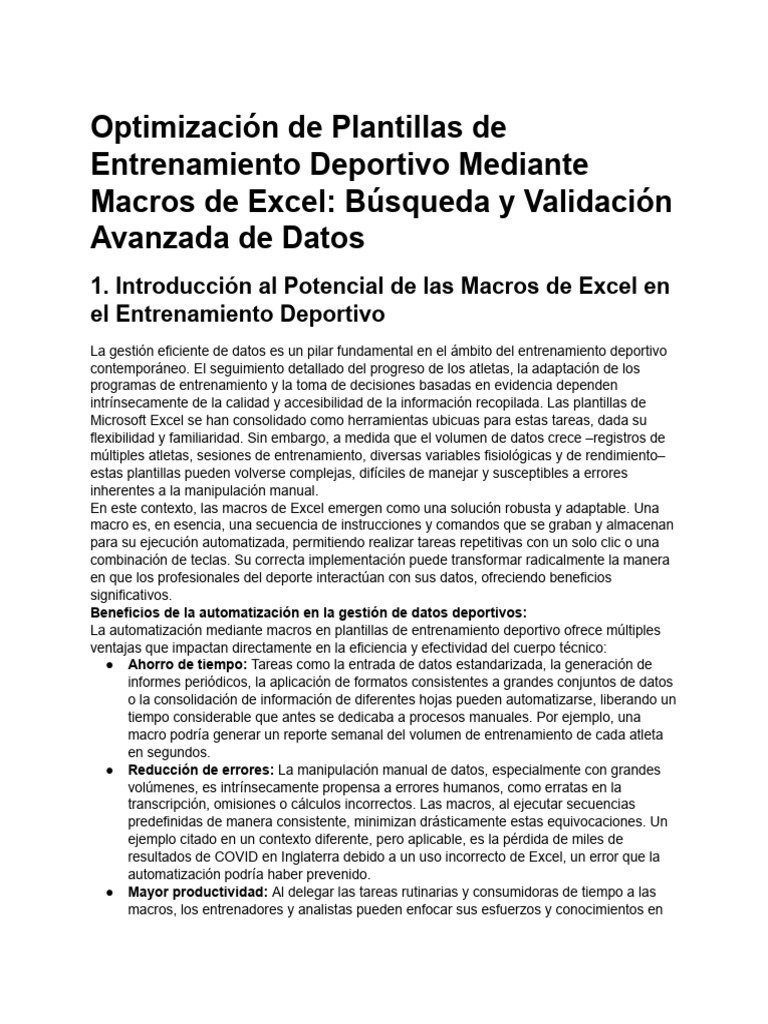 La automatización mediante macros en plantillas de entrenamiento deportivo ofrece múltiples