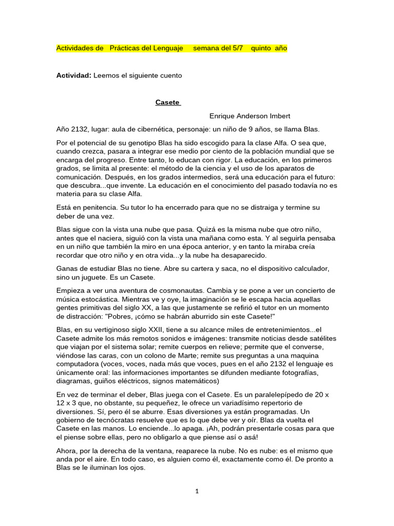 Actividad: Leemos el siguiente cuento