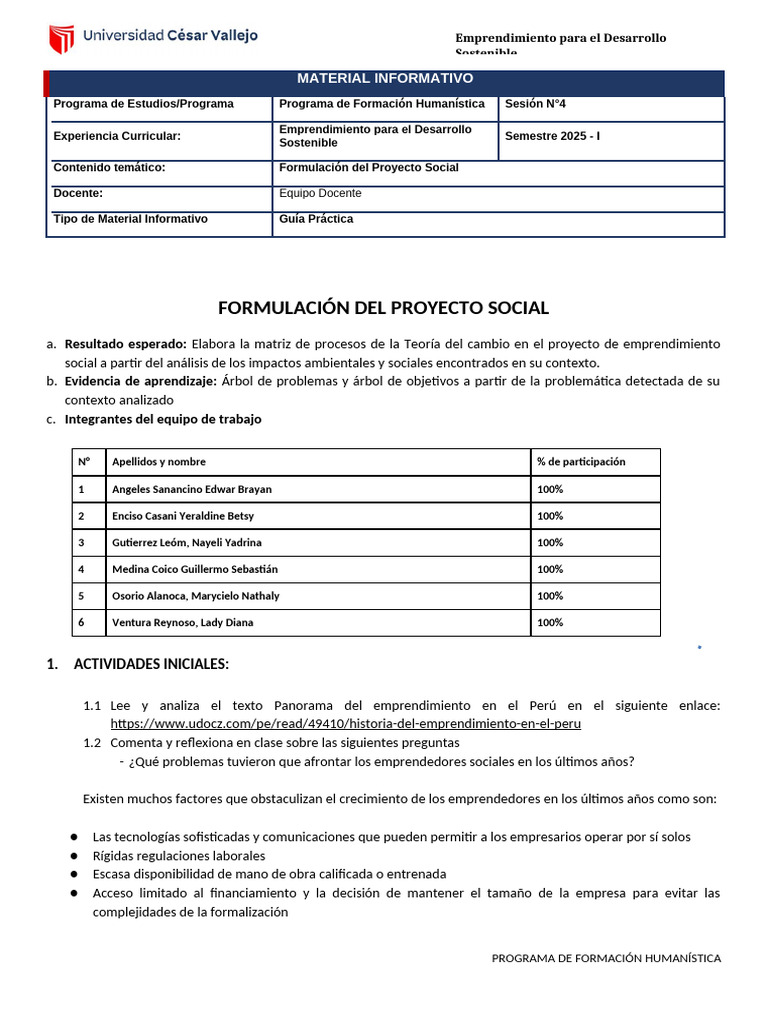 Contenido temático: Formulación del Proyecto Social