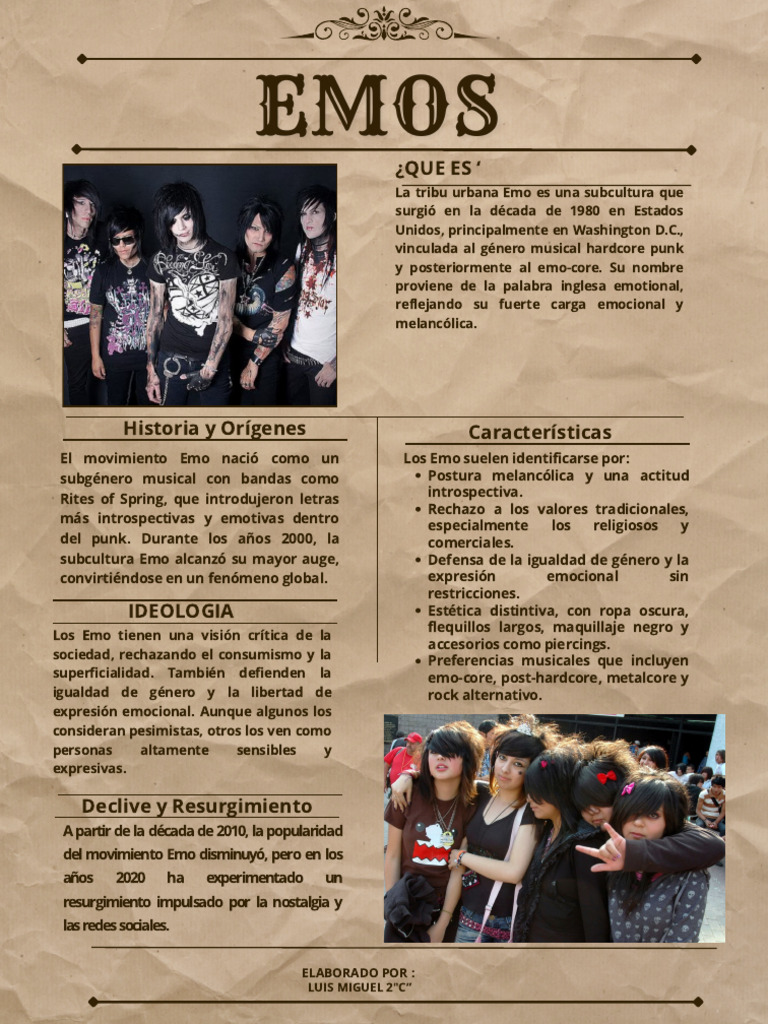 El movimiento Emo nació como un Los Emo suelen identificarse por: