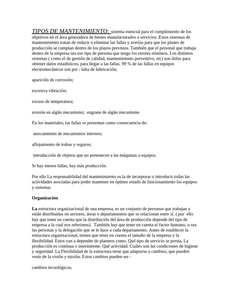 TIPOS DE MANTENIMIENTO: sistema esencial para el cumplimiento de los