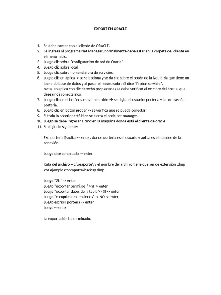 EXPORT EN ORACLE