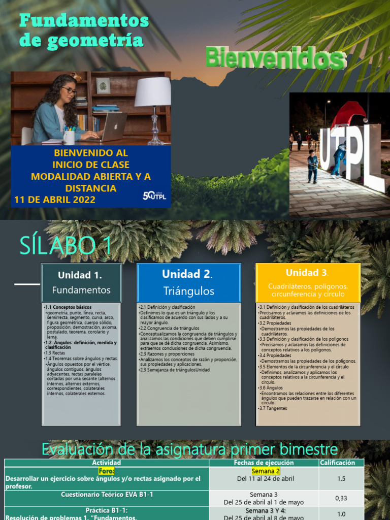 •1.3 Rectas •2.3 Razones y proporciones •3.4 Propiedades