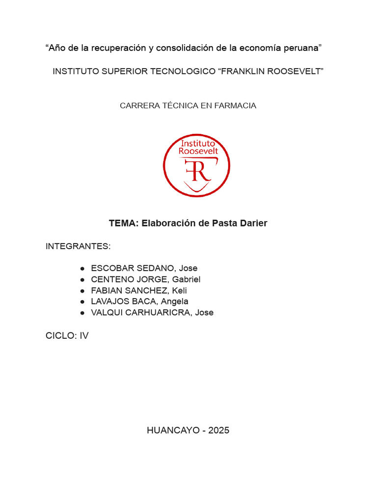 En esta práctica se elaboró una pasta tipo Darier modificada, formulada
