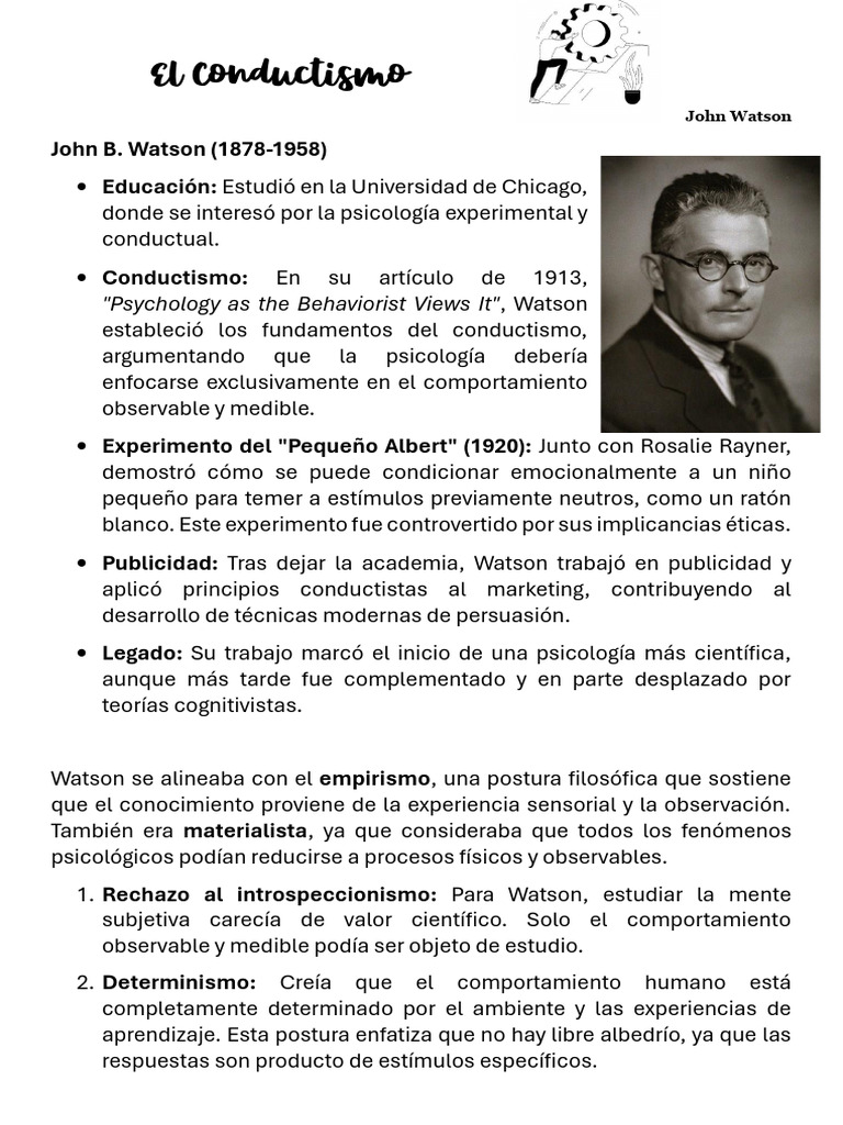 • Conductismo: En su artículo de 1913,