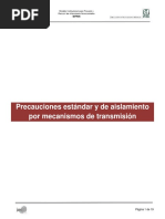 Consiste en la separacin de personas infectadas de los huspedes Susceptibles durante el perodo de transmisibilidad de la enfermedad, En lugares y bajo condiciones tales que eviten o limiten La transmisin del agente infeccioso (16), en otras palabras significa Que en todo paciente que se sospeche o documente proceso infeccioso, Deben aplicarse las medidas de barreras para prevenir y Controlar su transmisibilidad. Si bien ello implica utilizar ambientes O habitaciones individuales deber considerarse adems la Separacin por cohorte.