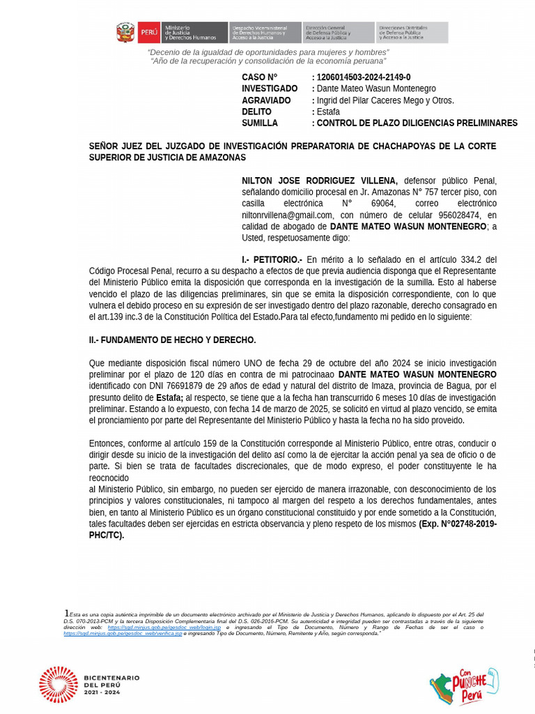 INVESTIGADO : Dante Mateo Wasun Montenegro
