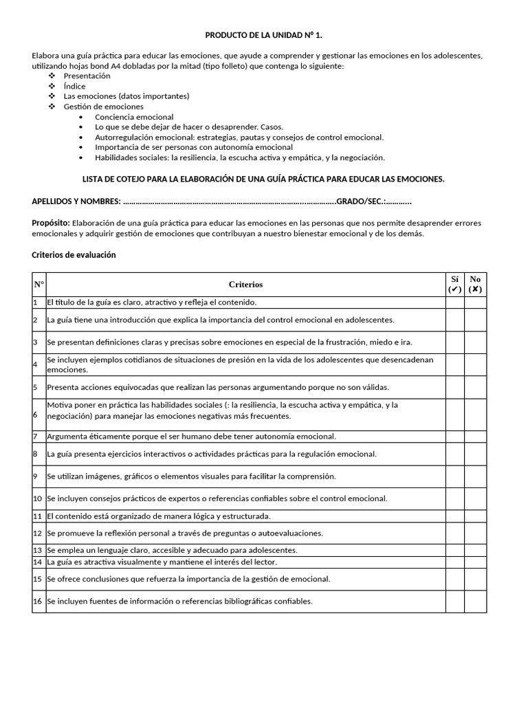 LISTA DE COTEJO PARA LA ELABORACIÓN DE UNA GUÍA PRÁCTICA PARA EDUCAR LAS EMOCIONES.