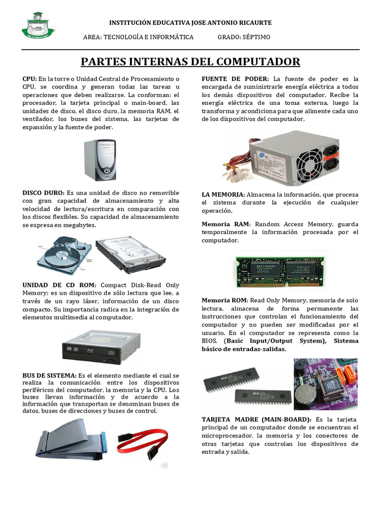 ventilador, los buses del sistema, las tarjetas de de los dispositivos del computador.