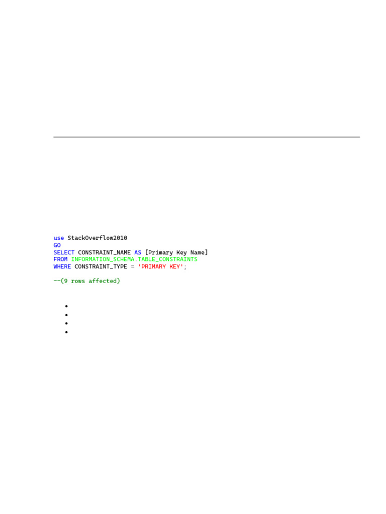 WHERE CONSTRAINT_TYPE = 'PRIMARY KEY';