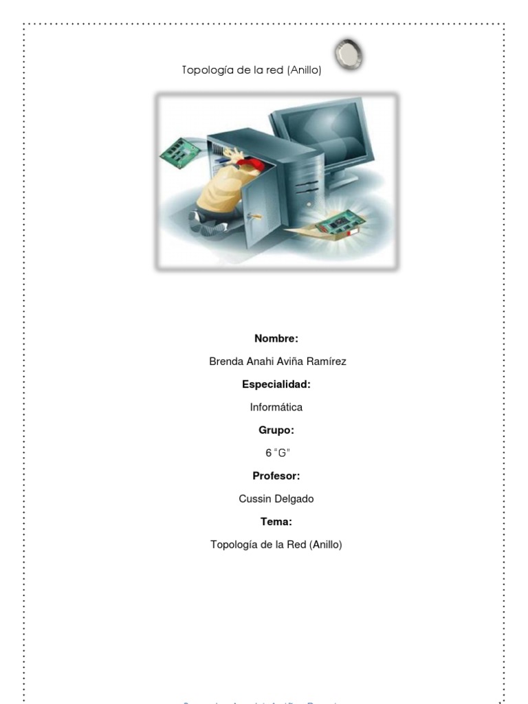 Nombre: Brenda Anahi Avia Ramrez Especialidad: Informtica Grupo: 6 G Profesor: Cussin Delgado Tema: Topologa de la Red (Anillo)
