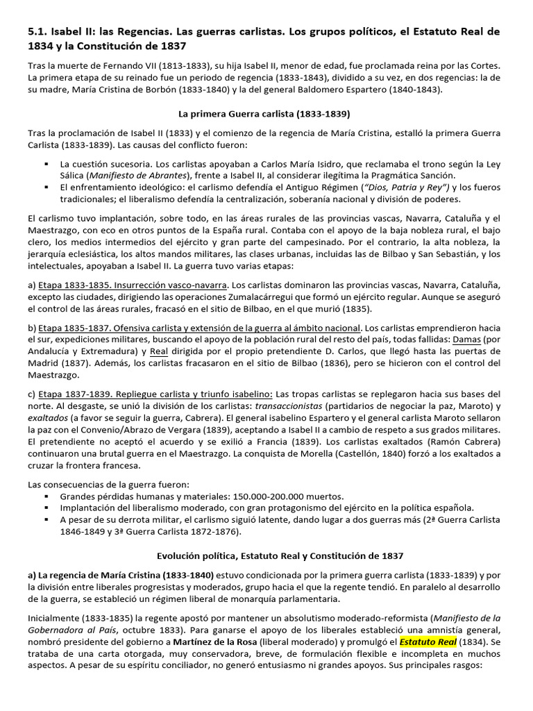 5.1. Isabel II: las Regencias. Las guerras carlistas.