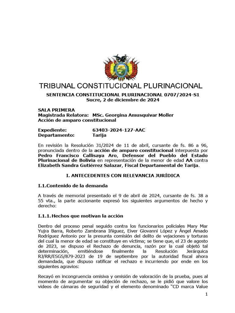 Magistrada Relatora: MSc. Georgina Amusquivar Moller