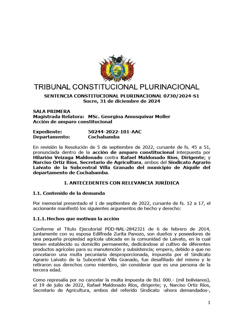 caso que las autoridades indígena originario campesinas del Sindicato Agrario