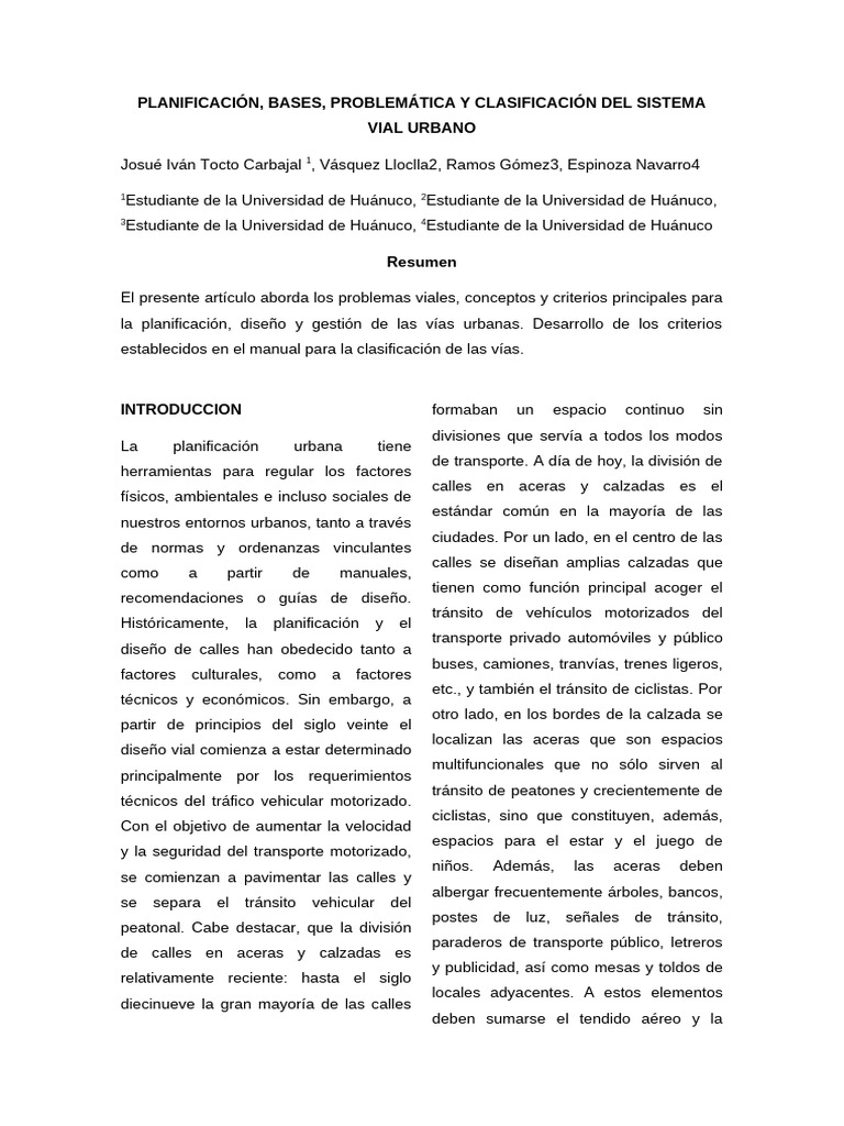 El presente artículo aborda los problemas viales, conceptos y criterios principales para