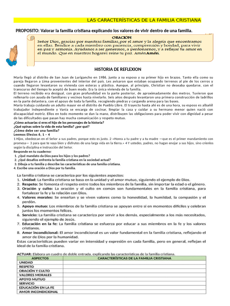 PROPOSITO: Valorar la familia cristiana explicando los valores de vivir dentro de una familia.