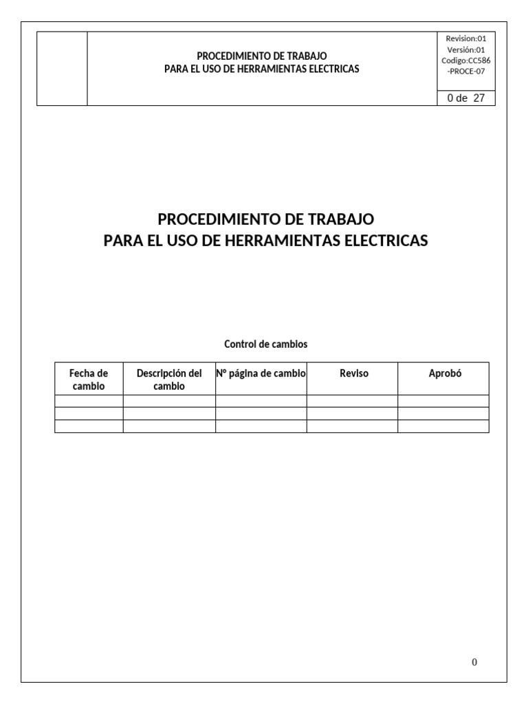Aplica para los trabajos y/o actividades que involucren el Uso de herramientas eléctricas, a ejecutar