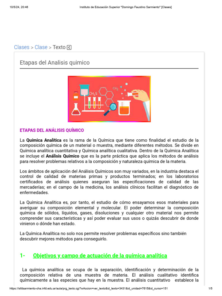 1- Objetivos y campo de actuación de la química analítica